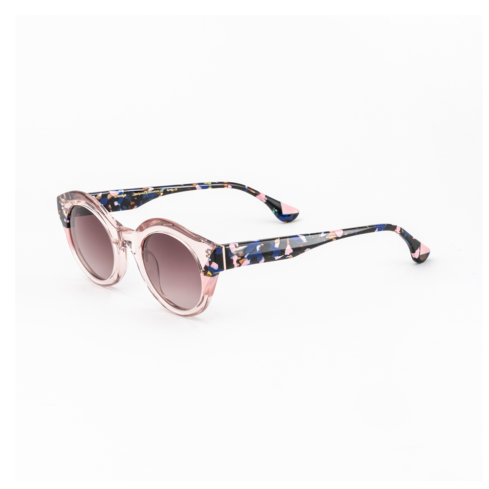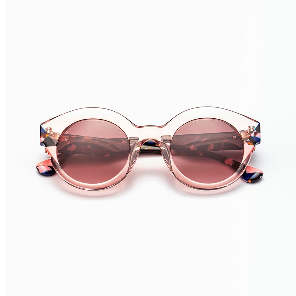 Γυαλιά ηλίου Woodys KAIA 04 σε σχήμα στρογγυλό.Κοκκάλινα με χρώμα διάφανο ροζ-nude με χρωματιστούς βραχίονες.