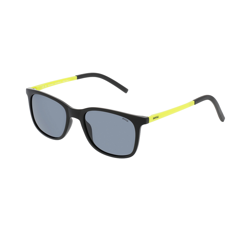 Γυαλιά ηλίου ΠΑΙΔΙΚΑ INVU IK22406C με σχήμα τετράγωνα.Κοκκάλινα σε χρώμα μαύρο ματ με πράσινους βραχίονες.